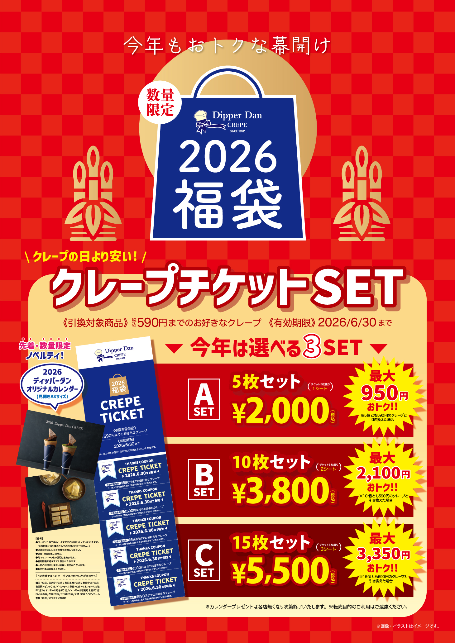 DipperDan2026福袋「クレープチケットセット」を数量限定にて販売いたします。