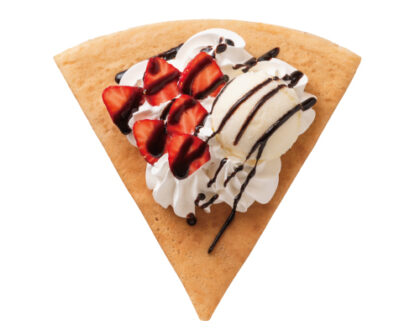 「イチゴチョコ」にひんやりバニラアイスを添えたアイス入りクレープでは定番の人気メニュー♪